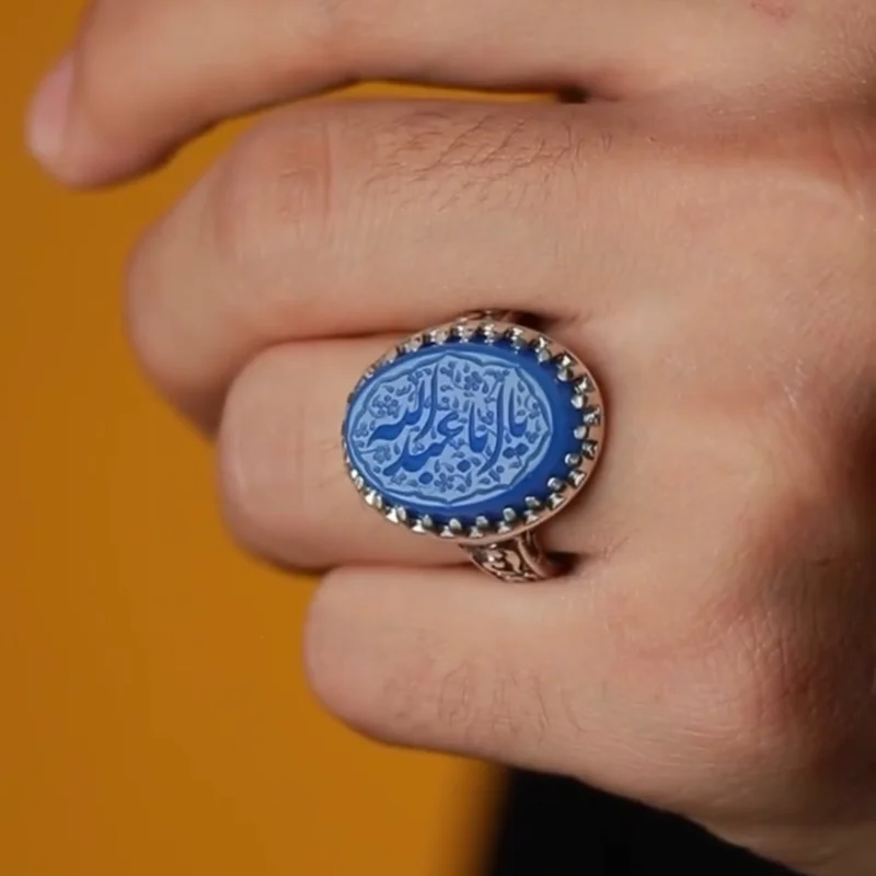 انگشتر نقره مردانه با سنگ عقیق آبی درجه یک ، رکاب انگشتر از نقره اصل با عیار بین المللی 925 ساخته شده و دارای ضخامت استاندارد و کیفیت بالایی می باشد ، انگشتر انتخابی شما قابل سایز میباشد و شما میتوانید از منوی بالا ، سایز رکاب خود را انتخاب نمایید. (چنانچه از سایز انگشت خود اطلاعی ندارید در زمان ثبت سفارش گزینه "اطلاع ندارم" را انتخاب بفرمایید تا همکاران ما در اسرع وقت در رابطه با نحوه اندازه گیری سایز انگشتر با شما تماس بگیرند)