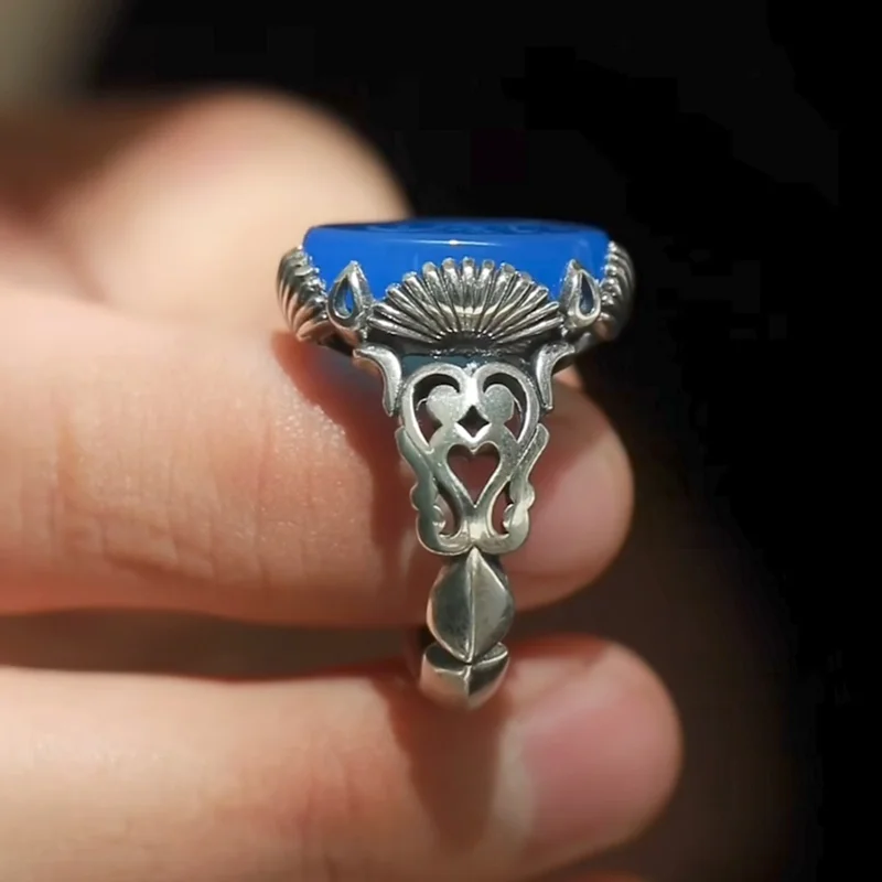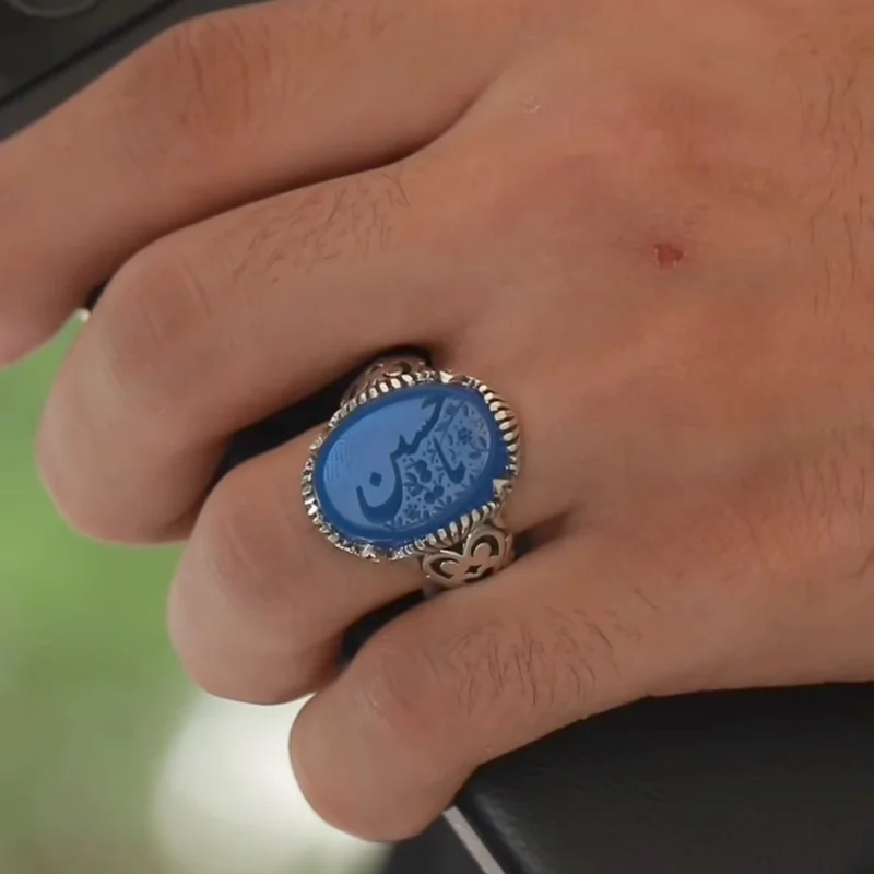 انگشتر نقره مردانه با سنگ عقیق آبی درجه یک ، رکاب انگشتر از نقره اصل با عیار بین المللی 925 ساخته شده و دارای ضخامت استاندارد و کیفیت بالایی می باشد ، انگشتر انتخابی شما قابل سایز میباشد و شما میتوانید از منوی بالا ، سایز رکاب خود را انتخاب نمایید. (چنانچه از سایز انگشت خود اطلاعی ندارید در زمان ثبت سفارش گزینه "اطلاع ندارم" را انتخاب بفرمایید تا همکاران ما در اسرع وقت در رابطه با نحوه اندازه گیری سایز انگشتر با شما تماس بگیرند)
