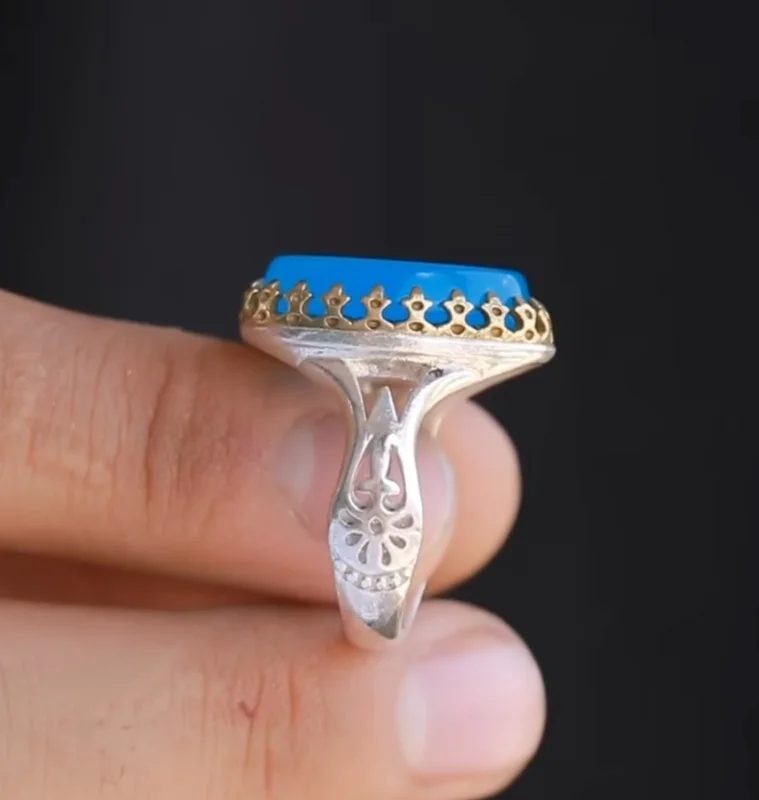 انگشتر نقره مردانه با سنگ عقیق آبی درجه یک ، رکاب انگشتر از نقره اصل با عیار بین المللی 925 ساخته شده و دارای ضخامت استاندارد و کیفیت بالایی می باشد ، انگشتر انتخابی شما قابل سایز میباشد و شما میتوانید از منوی بالا ، سایز رکاب خود را انتخاب نمایید. (چنانچه از سایز انگشت خود اطلاعی ندارید در زمان ثبت سفارش گزینه "اطلاع ندارم" را انتخاب بفرمایید تا همکاران ما در اسرع وقت در رابطه با نحوه اندازه گیری سایز انگشتر با شما تماس بگیرند)