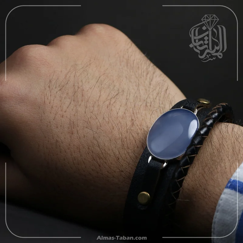 دستبند تلفیقی نقره و چرم مردانه با سنگ عقیق کبود یمنی درجه یک ، قاب سنگ از نقره اصل با عیار بین المللی 925 ساخته شده و دارای ضخامت استاندارد و کیفیت بالایی میباشد ، دستبند انتخابی شما قابل سایز میباشد و شما خودتان میتوانید به راحتی سایز دستبند را تغییر دهید