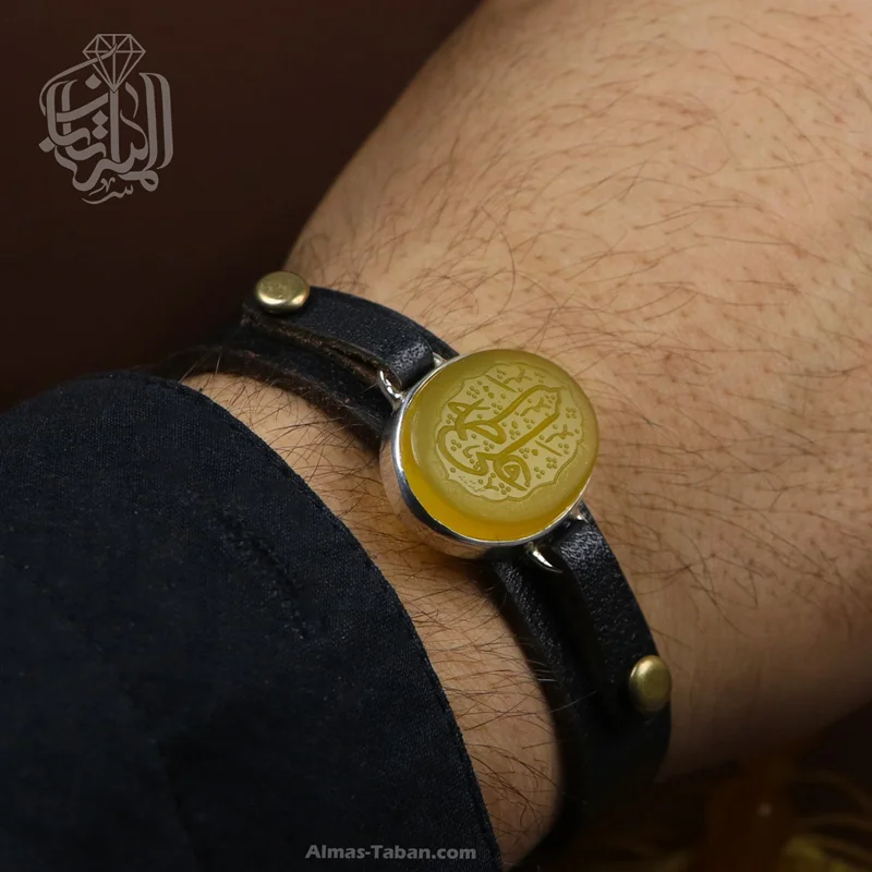 دستبند تلفیقی نقره و چرم مردانه با سنگ عقیق زرد درجه یک ، قاب سنگ از نقره اصل با عیار بین المللی 925 ساخته شده و دارای ضخامت استاندارد و کیفیت بالایی می‌باشد ، دستبند انتخابی شما قابل سایز می‌باشد و شما خودتان می‌توانید به راحتی سایز دستبند را تغییر دهید.