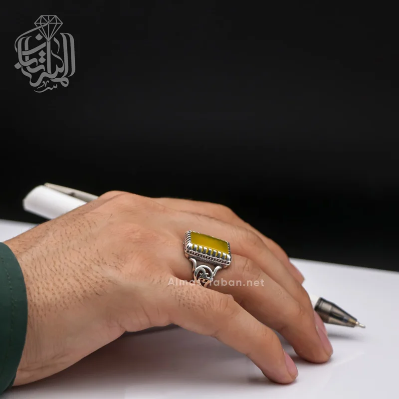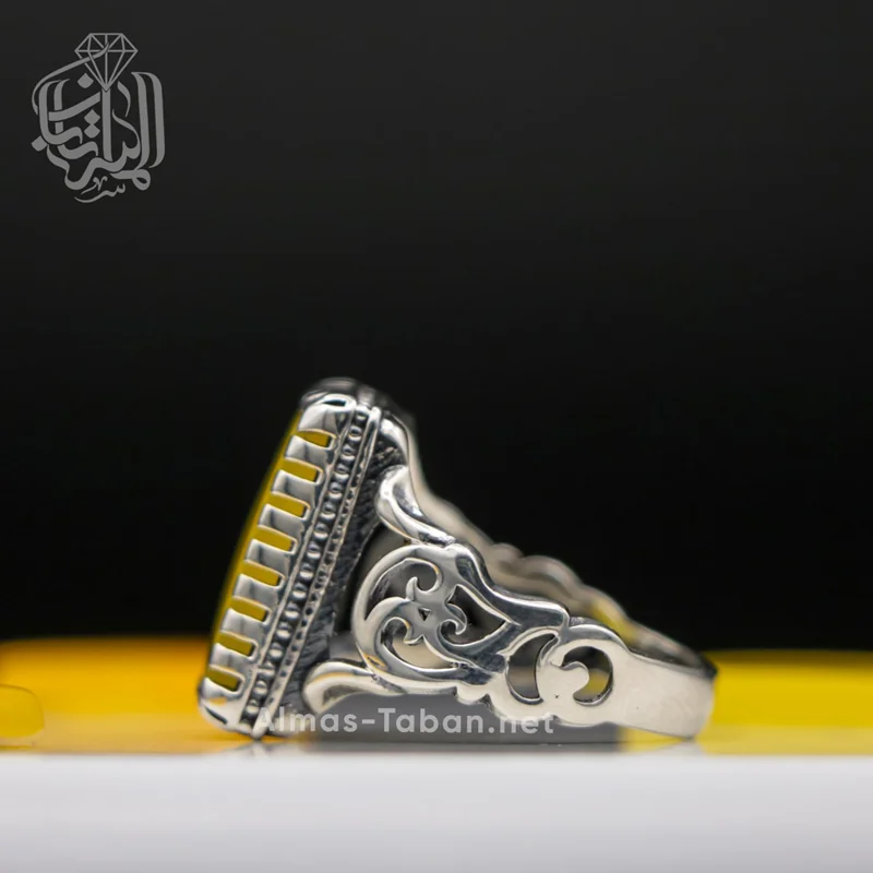 انگشتر نقره مردانه با سنگ عقیق زرد ( آماده حکاکی ذکر شرف الشمس با کلیه آداب مربوطه و به نام شما در 19 فروردین ماه) ، رکاب این انگشتر از نقره اصل با عیار بین المللی 925 ساخته شده و دارای ضخامت استاندارد و کیفیت بالایی می‌باشد.تمامی شرف الشمس های گالری الماس تابان با رعایت کلیه آداب مربوطه و در ساعت خاص و در صورت تمایل به نام شخص حکاکی می شوند. چنانچه تمایل دارید این دعا به نام شما و اختصاصی نوشته شود لطفا در هنگام ثبت سفارش در قسمت توضیحات نام کوچک خود و نام کوچک مادر خود را درج نمایید.