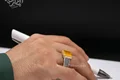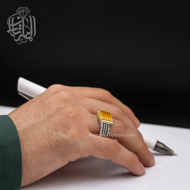 انگشتر نقره مردانه با سنگ عقیق زرد ( آماده حکاکی ذکر شرف الشمس با کلیه آداب مربوطه و به نام شما در 19 فروردین ماه) ، رکاب این انگشتر از نقره اصل با عیار بین المللی 925 ساخته شده و دارای ضخامت استاندارد و کیفیت بالایی می‌باشد.تمامی شرف الشمس های گالری الماس تابان با رعایت کلیه آداب مربوطه و در ساعت خاص و در صورت تمایل به نام شخص حکاکی می شوند. چنانچه تمایل دارید این دعا به نام شما و اختصاصی نوشته شود لطفا در هنگام ثبت سفارش در قسمت توضیحات نام کوچک خود و نام کوچک مادر خود را درج نمایید.