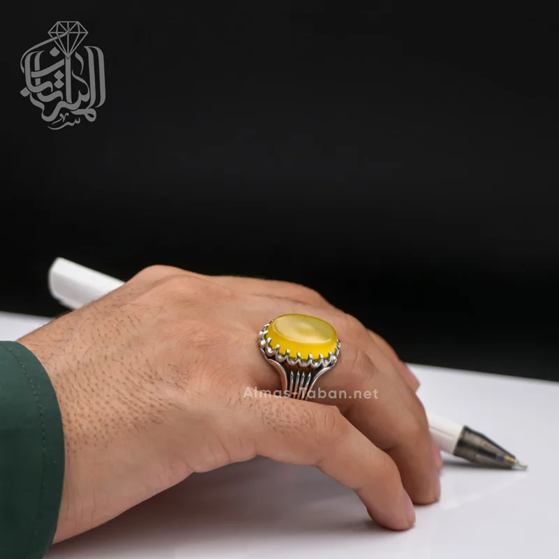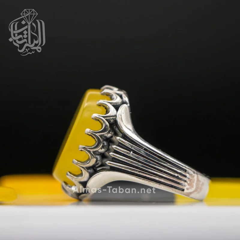 انگشتر نقره مردانه با سنگ عقیق زرد ( آماده حکاکی ذکر شرف الشمس با کلیه آداب مربوطه و به نام شما در 19 فروردین ماه) ، رکاب این انگشتر از نقره اصل با عیار بین المللی 925 ساخته شده و دارای ضخامت استاندارد و کیفیت بالایی می‌باشد.تمامی شرف الشمس های گالری الماس تابان با رعایت کلیه آداب مربوطه و در ساعت خاص و در صورت تمایل به نام شخص حکاکی می شوند. چنانچه تمایل دارید این دعا به نام شما و اختصاصی نوشته شود لطفا در هنگام ثبت سفارش در قسمت توضیحات نام کوچک خود و نام کوچک مادر خود را درج نمایید.