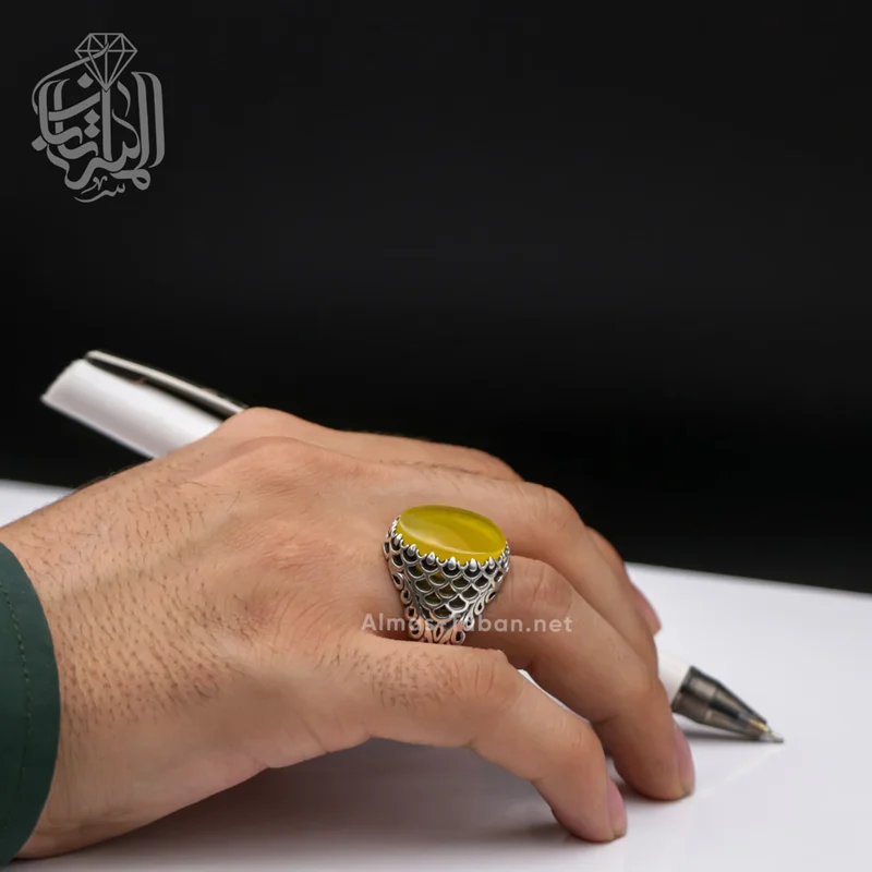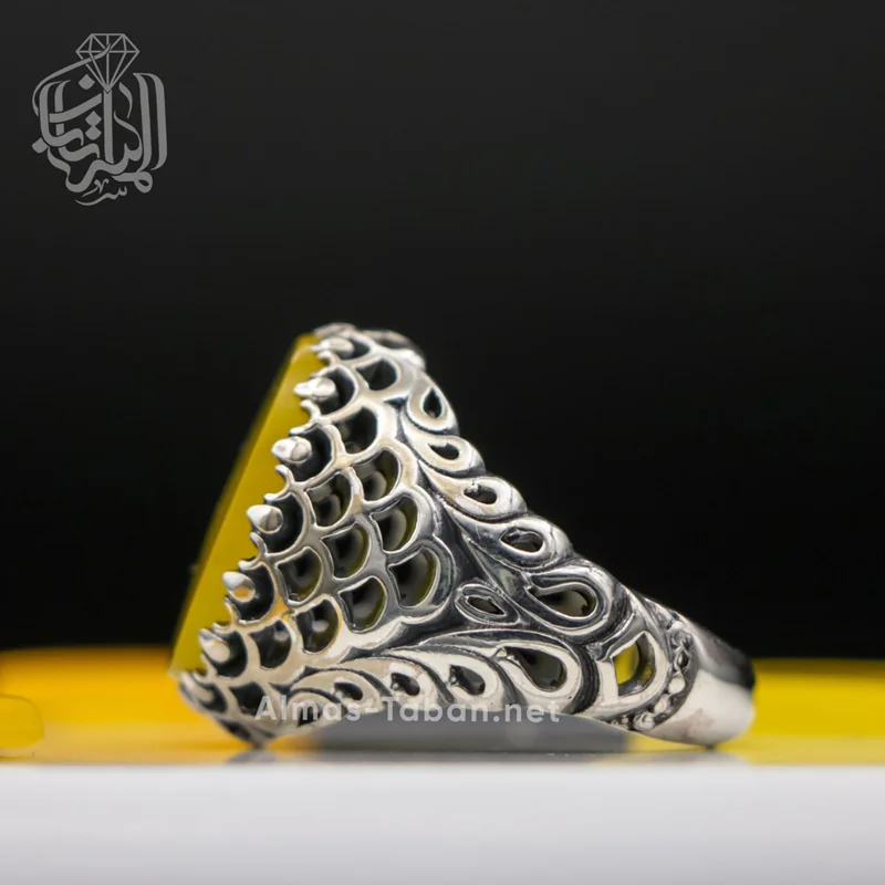 انگشتر نقره مردانه با سنگ عقیق زرد ( آماده حکاکی ذکر شرف الشمس با کلیه آداب مربوطه و به نام شما در 19 فروردین ماه) ، رکاب این انگشتر از نقره اصل با عیار بین المللی 925 ساخته شده و دارای ضخامت استاندارد و کیفیت بالایی می‌باشد.تمامی شرف الشمس های گالری الماس تابان با رعایت کلیه آداب مربوطه و در ساعت خاص و در صورت تمایل به نام شخص حکاکی می شوند. چنانچه تمایل دارید این دعا به نام شما و اختصاصی نوشته شود لطفا در هنگام ثبت سفارش در قسمت توضیحات نام کوچک خود و نام کوچک مادر خود را درج نمایید.