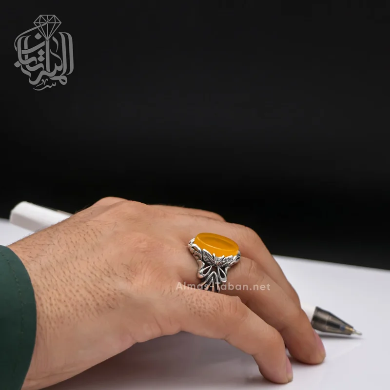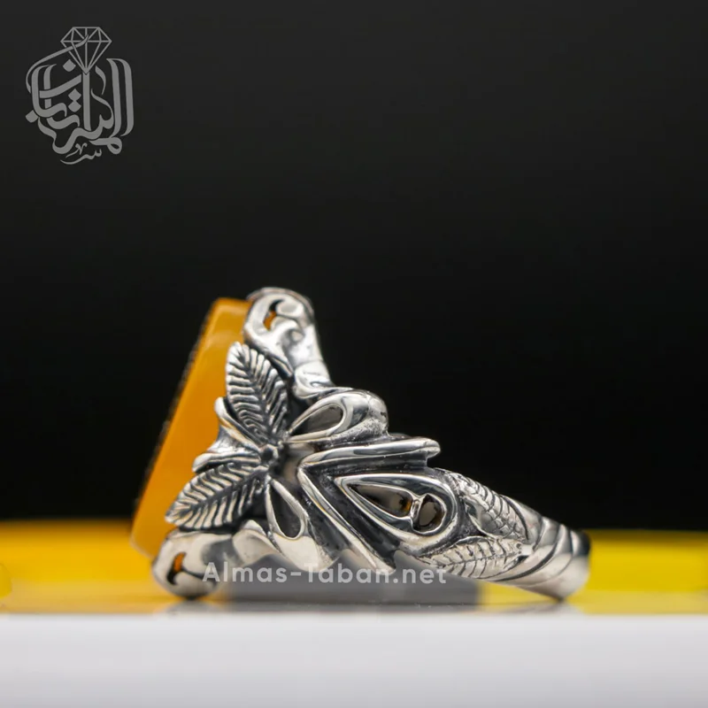 انگشتر نقره مردانه با سنگ عقیق زرد ( آماده حکاکی ذکر شرف الشمس با کلیه آداب مربوطه و به نام شما در 19 فروردین ماه) ، رکاب این انگشتر از نقره اصل با عیار بین المللی 925 ساخته شده و دارای ضخامت استاندارد و کیفیت بالایی می‌باشد.تمامی شرف الشمس های گالری الماس تابان با رعایت کلیه آداب مربوطه و در ساعت خاص و در صورت تمایل به نام شخص حکاکی می شوند. چنانچه تمایل دارید این دعا به نام شما و اختصاصی نوشته شود لطفا در هنگام ثبت سفارش در قسمت توضیحات نام کوچک خود و نام کوچک مادر خود را درج نمایید.