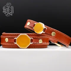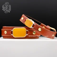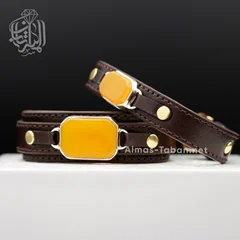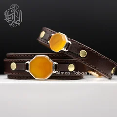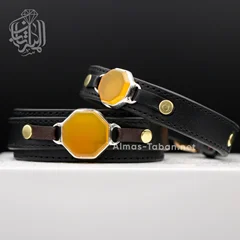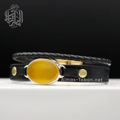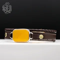 دستبند چرمی مردانه با سنگ عقیق زرد ( آماده حکاکی ذکر شرف الشمس با کلیه آداب مربوطه و به نام شما در 19 فروردین ماه) ، فریم این دستبند از نقره اصل با عیار بین المللی 925 به صورت دست ساز ساخته شده و دارای ضخامت استاندارد و کیفیت بالایی می‌باشد.تمامی شرف الشمس های گالری الماس تابان با رعایت کلیه آداب مربوطه و در ساعت خاص و در صورت تمایل به نام شخص حکاکی می شوند. چنانچه تمایل دارید این دعا به نام شما و اختصاصی نوشته شود لطفا در هنگام ثبت سفارش در قسمت توضیحات نام کوچک خود و نام کوچک مادر خود را درج نمایید.
