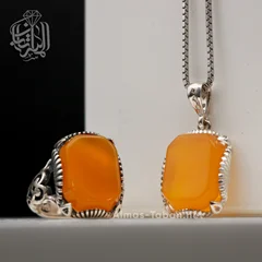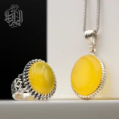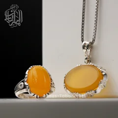 ست گردنبند و انگشتر با سنگ عقیق زرد ( آماده حکاکی ذکر شرف الشمس با کلیه آداب مربوطه و به نام شما در 19 فروردین ماه) ، رکاب و فریم این ست از نقره اصل با عیار بین المللی 925 ساخته شده و دارای ضخامت استاندارد و کیفیت بالایی میباشد.تمامی شرف الشمس های گالری الماس تابان با رعایت کلیه آداب مربوطه و در ساعت خاص و در صورت تمایل به نام شخص حکاکی می شوند. چنانچه تمایل دارید این دعا به نام شما و اختصاصی نوشته شود لطفا در هنگام ثبت سفارش در قسمت توضیحات نام کوچک خود و نام کوچک مادر خود را درج نمایید.