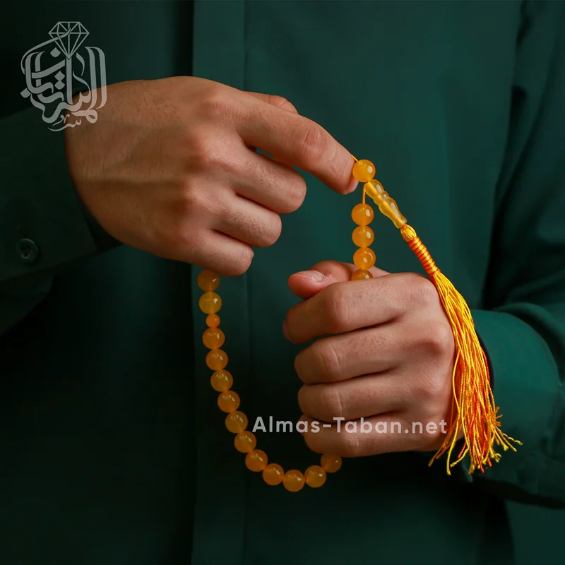 تسبیح با سنگ عقیق زرد ( آماده حکاکی ذکر شرف الشمس با کلیه آداب مربوطه و به نام شما در 19 فروردین ماه) ، تمامی شرف الشمس های گالری الماس تابان با رعایت کلیه آداب مربوطه و در ساعت خاص و در صورت تمایل به نام شخص حکاکی می شوند. چنانچه تمایل دارید این دعا به نام شما و اختصاصی نوشته شود لطفا در هنگام ثبت سفارش در قسمت توضیحات نام کوچک خود و نام کوچک مادر خود را درج نمایید.