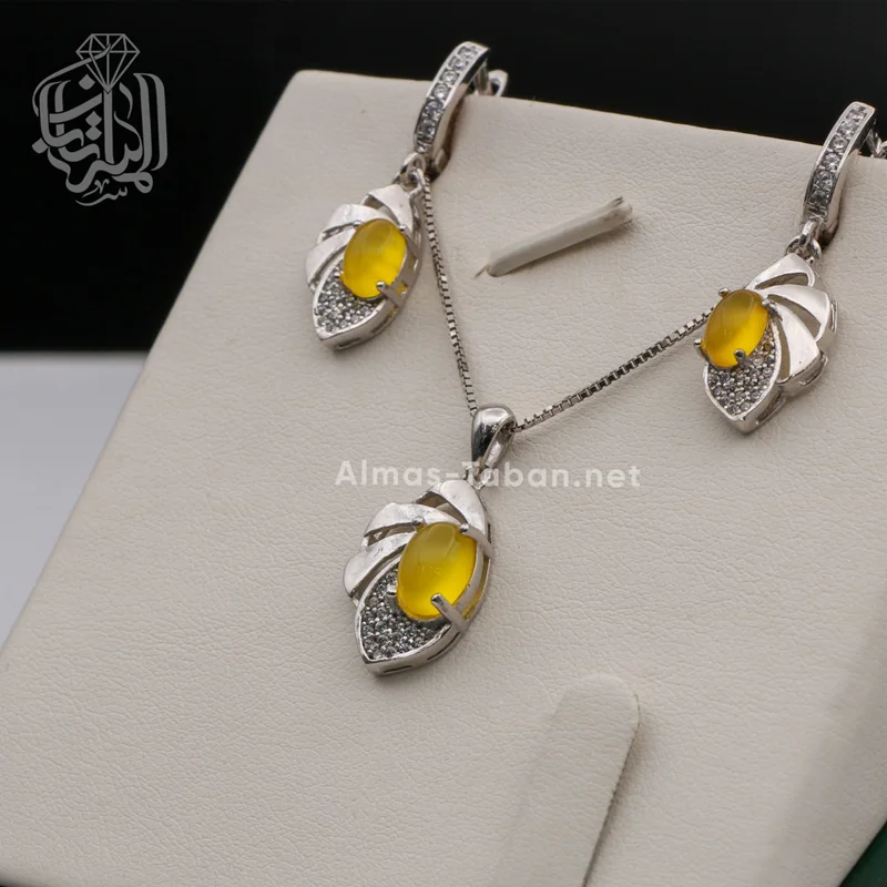 نیم ست نقره زنانه با سنگ عقیق زرد ( آماده حکاکی ذکر شرف الشمس با کلیه آداب مربوطه و به نام شما در 19 فروردین ماه) ، فریم این نیم ست از نقره اصل با عیار بین المللی 925 ساخته شده و دارای ضخامت استاندارد و کیفیت بالایی می‌باشد.تمامی شرف الشمس های گالری الماس تابان با رعایت کلیه آداب مربوطه و در ساعت خاص و در صورت تمایل به نام شخص حکاکی می شوند. چنانچه تمایل دارید این دعا به نام شما و اختصاصی نوشته شود لطفا در هنگام ثبت سفارش در قسمت توضیحات نام کوچک خود و نام کوچک مادر خود را درج نمایید.
