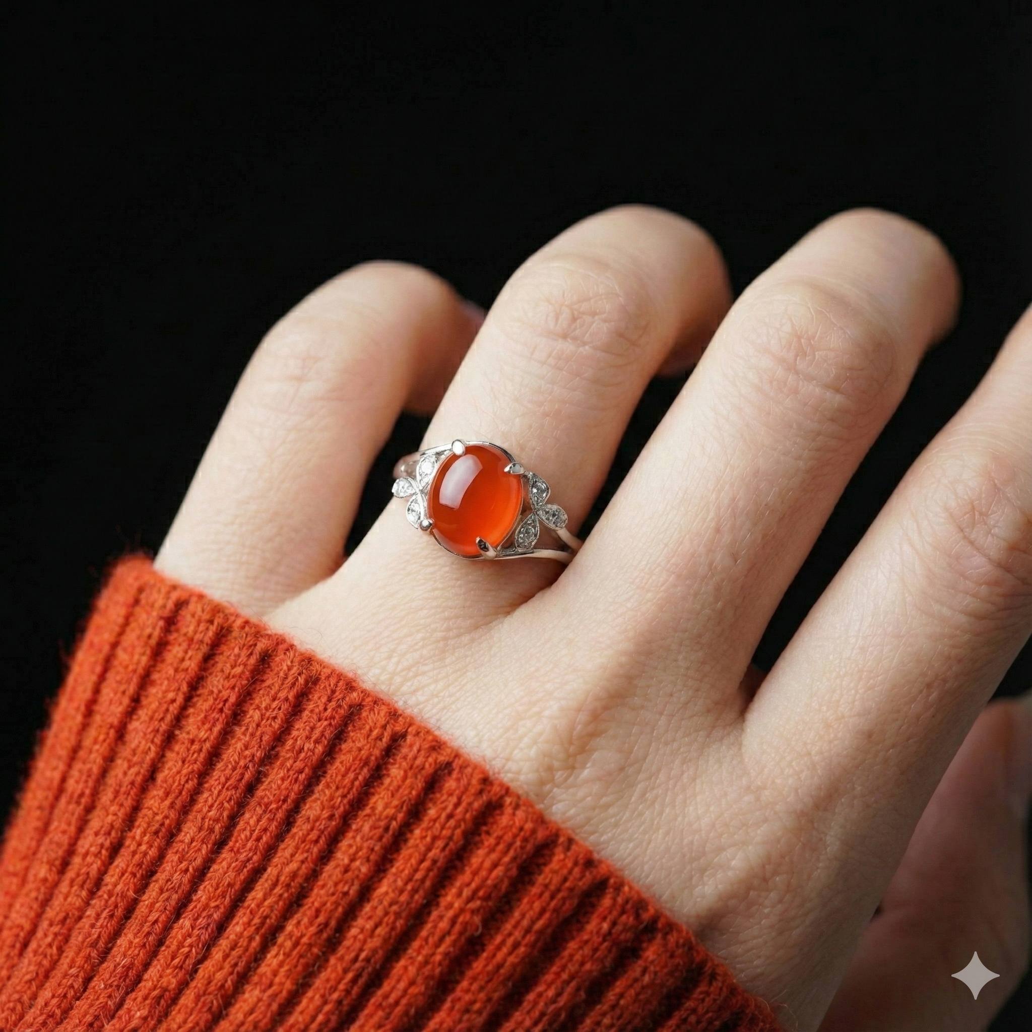 انگشتر نقره زنانه با سنگ عقیق سرخ درجه یک ، رکاب انگشتر از نقره اصل با عیار بین المللی 925 ساخته شده و دارای ضخامت استاندارد و کیفیت بالایی می‌باشد ، انگشتر انتخابی شما قابل سایز می‌باشد و شما می‌توانید از منوی بالا ، سایز رکاب انگشتر را انتخاب نمایید.(چنانچه این محصول را برای هدیه میخواهید و از سایز انگشت اطلاعی ندارید در زمان ثبت سفارش گزینه "سایز مناسب هدیه" را انتخاب بفرمایید تا انگشتر انتخابی شما با سایز متداول و معمول بانوان ارسال شود)