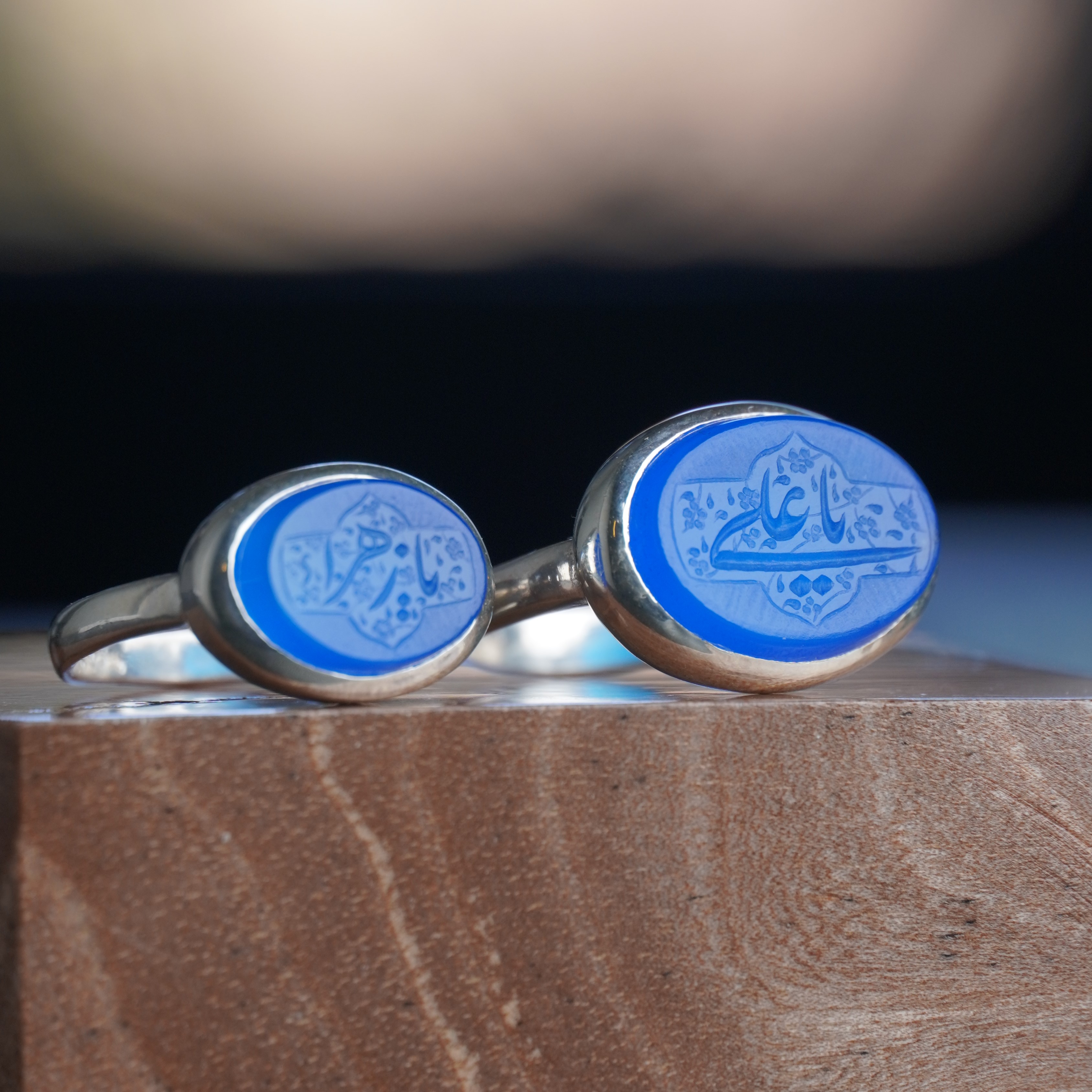 انگشتر ست زنانه و مردانه عقیق آبی کد 1263