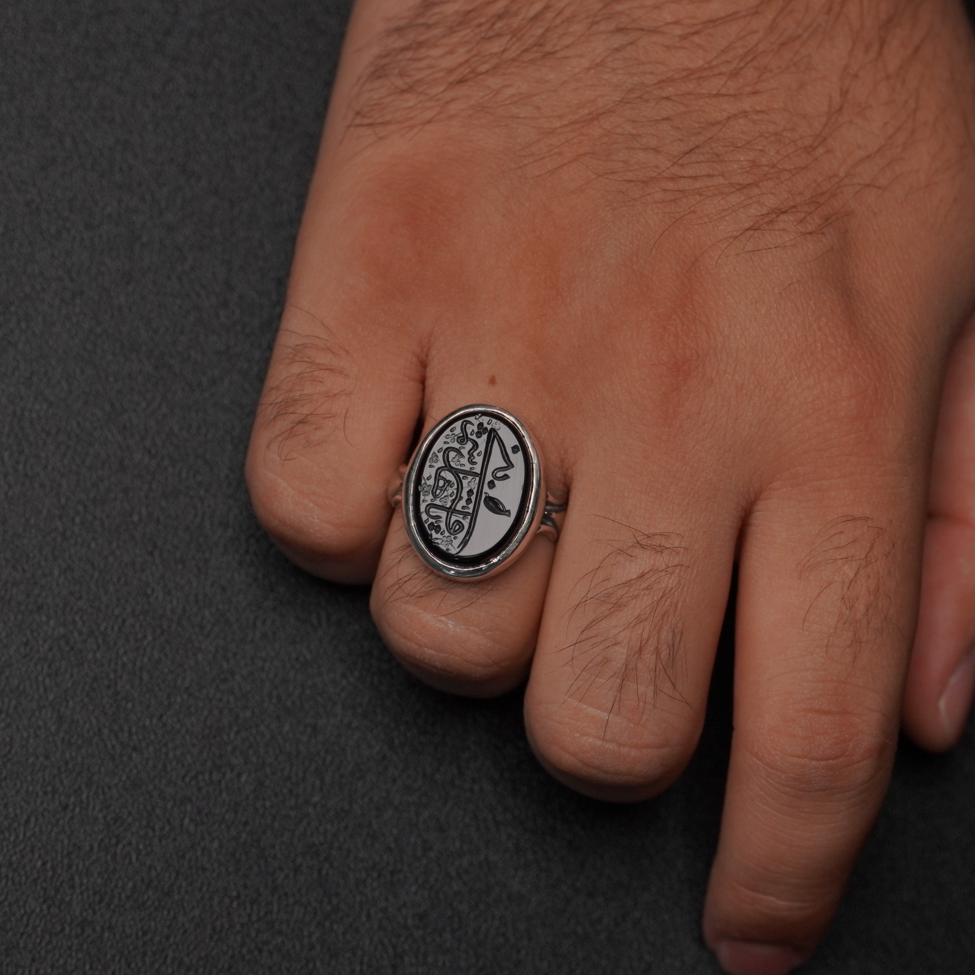 ست گردنبند و انگشتر نقره مردانه با سنگ عقیق مشکی درجه یک ، رکاب انگشتر از نقره اصل با عیار بین المللی 925 ساخته شده و دارای ضخامت استاندارد و کیفیت بالایی می‌ باشد ، انگشتر انتخابی شما قابل سایز می‌باشد و شما می‌توانید از منوی بالا ، سایز رکاب خود را انتخاب نمایید. (چنانچه از سایز انگشت خود اطلاعی ندارید در زمان ثبت سفارش گزینه "اطلاع ندارم" را انتخاب بفرمایید تا همکاران ما در اسرع وقت در رابطه با نحوه اندازه گیری سایز انگشتر با شما تماس بگیرند)