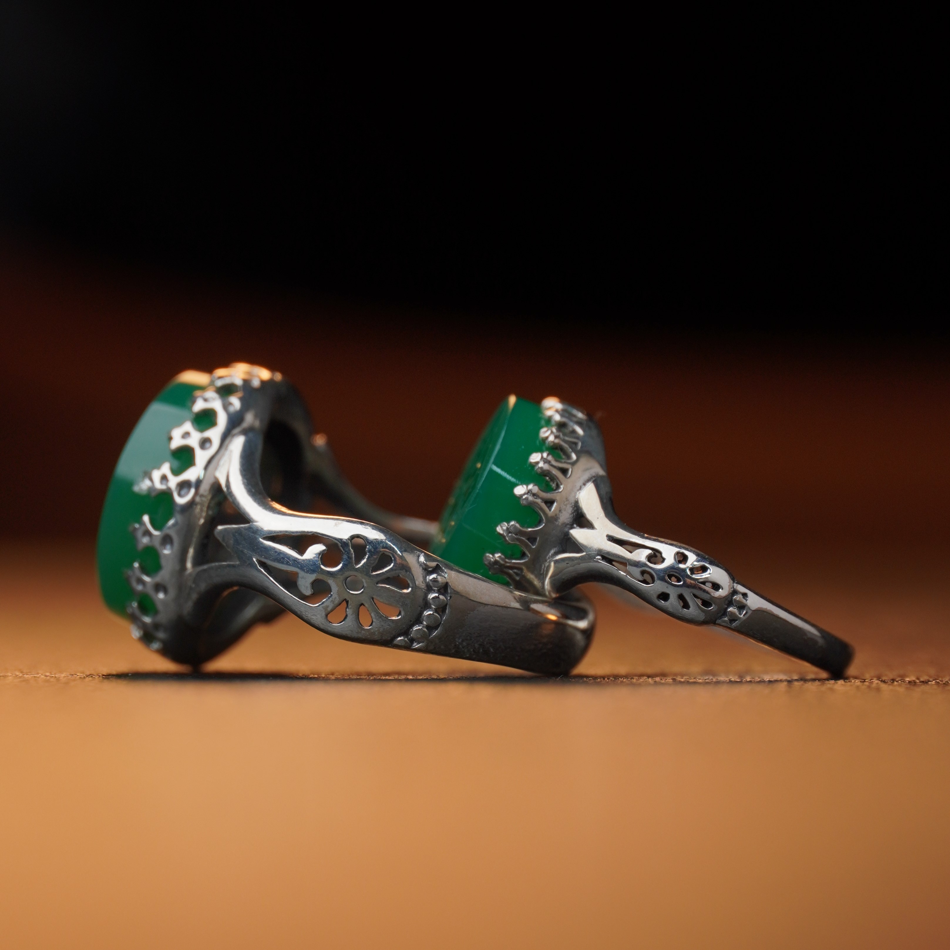 انگشترهای ست زنانه و مردانه با سنگ عقیق سبز درجه یک ، رکاب انگشتر از نقره اصل با عیار بین المللی 925 ساخته شده و دارای ضخامت و کیفیت بالایی میباشد، انگشتر انتخابی شما قابل سایز میباشد و شما میتوانید از منوی بالا، سایز رکاب خود را انتخاب نمایید. (چنانچه از سایز انگشت خود اطلاعی ندارید در زمان ثبت سفارش گزینه "اطلاع ندارم" را انتخاب بفرمایید تا همکاران ما در اسرع وقت در رابطه با نحوه اندازه گیری سایز انگشتر با شما تماس بگیرند)
