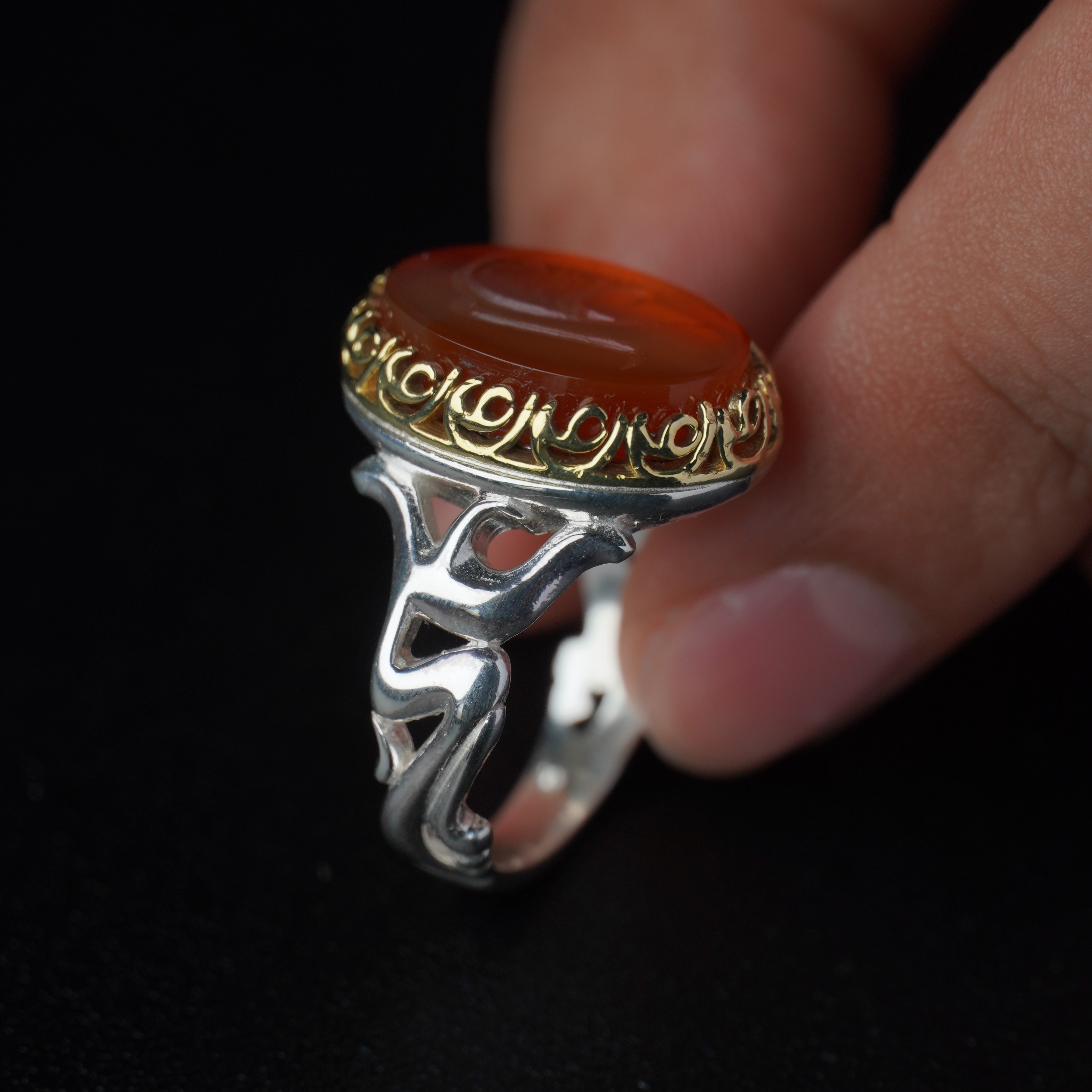 انگشتر نقره مردانه با سنگ عقیق سرخ درجه یک ، رکاب انگشتر از نقره اصل با عیار بین المللی 925 ساخته شده و دارای ضخامت استاندارد و کیفیت بالایی می‌باشد ، انگشتر انتخابی شما قابل سایز می‌باشد و شما می‌توانید از منوی بالا ، سایز رکاب خود را انتخاب نمایید. (چنانچه از سایز انگشت خود اطلاعی ندارید در زمان ثبت سفارش گزینه "اطلاع ندارم" را انتخاب بفرمایید تا همکاران ما در اسرع وقت در رابطه با نحوه اندازه گیری سایز انگشتر با شما تماس بگیرند)