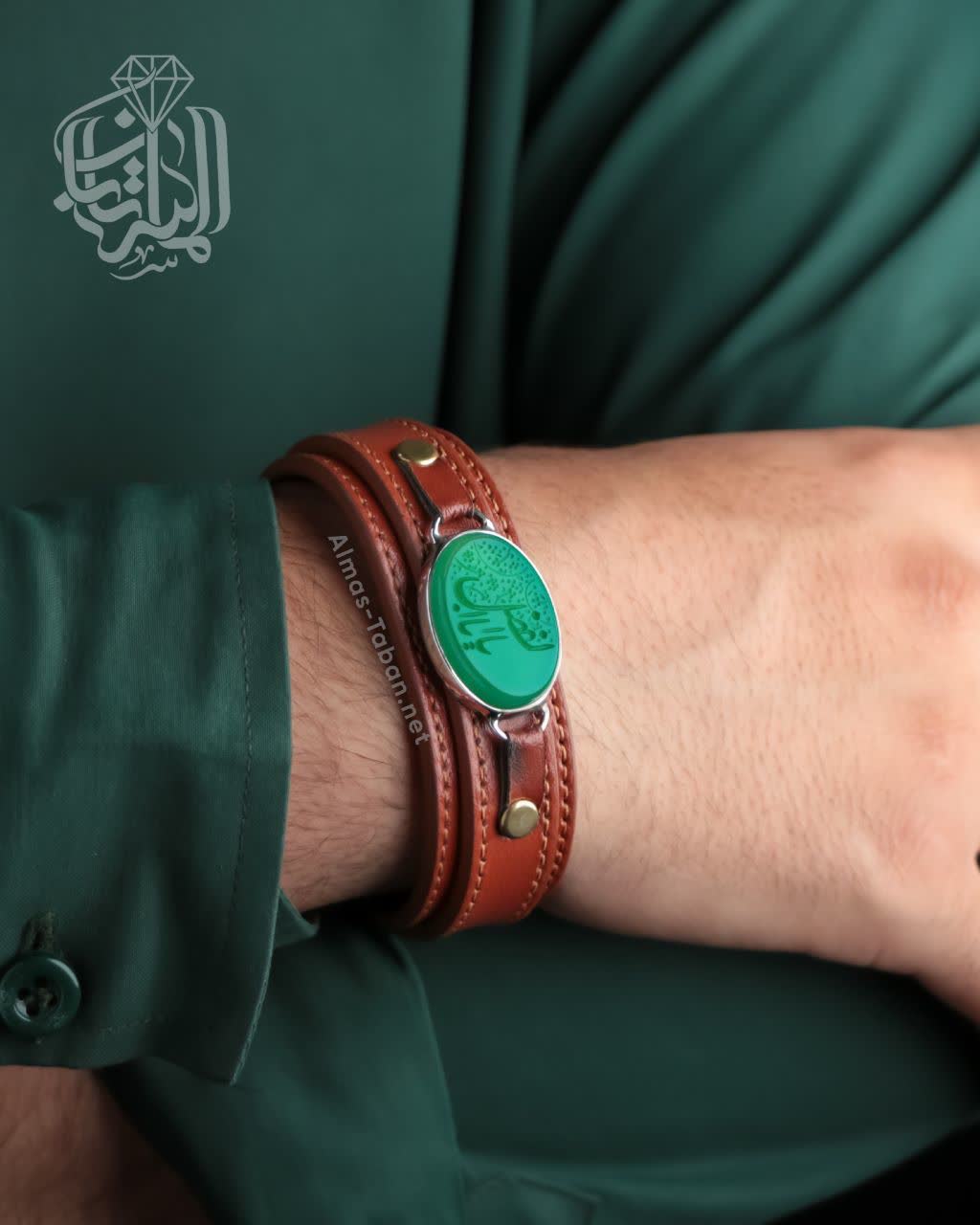 دستبند تلفیقی نقره و چرم مردانه با سنگ عقیق سبز درجه یک ، قاب سنگ از نقره اصل با عیار بین المللی 925 ساخته شده و دارای ضخامت استاندارد و کیفیت بالایی می‌باشد ، دستبند انتخابی شما قابل سایز می‌باشد و شما خودتان می‌توانید به راحتی سایز دستبند را تغییر دهید.