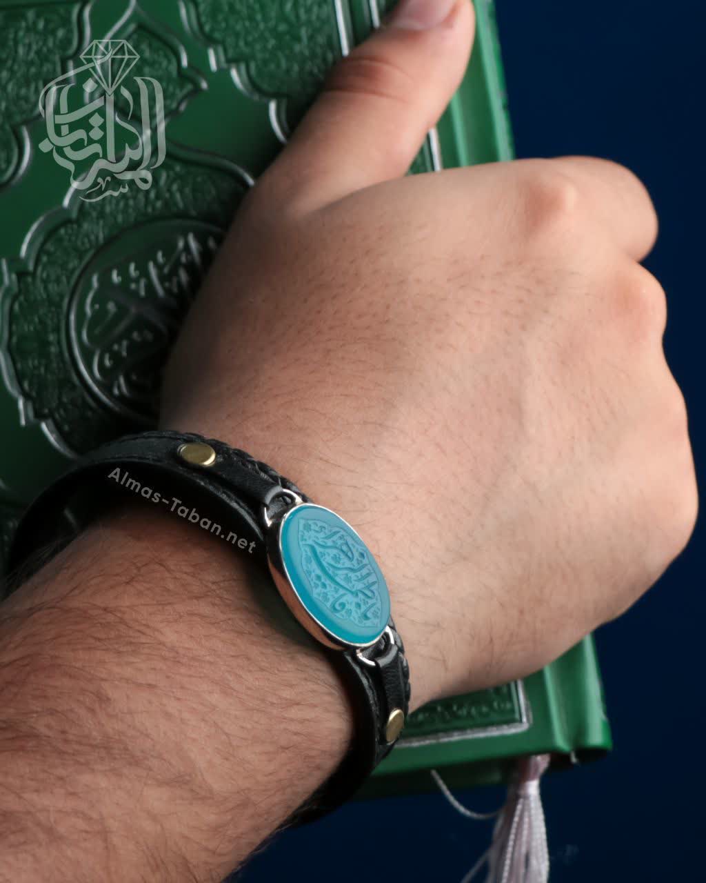 دستبند تلفیقی نقره و چرم مردانه با سنگ عقیق آبی درجه یک ، قاب سنگ از نقره اصل با عیار بین المللی 925 ساخته شده و دارای ضخامت استاندارد و کیفیت بالایی می‌باشد ، دستبند انتخابی شما قابل سایز می‌باشد و شما خودتان می‌توانید به راحتی سایز دستبند را تغییر دهید.